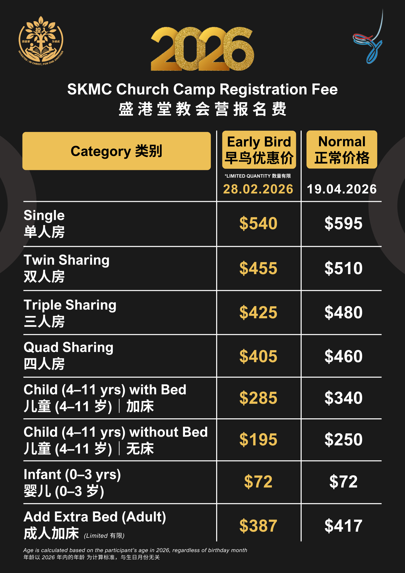 报名日期会是于2月1日 到 4月19日 - To enjoy Early Bird pricing, do make payment by 28 February 2026